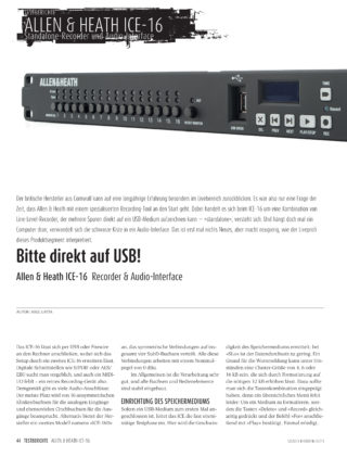 Hol dir jetzt den ausführlichen Testbericht des Allen & Heath ICE-16 Recorder & Audio-Interface!