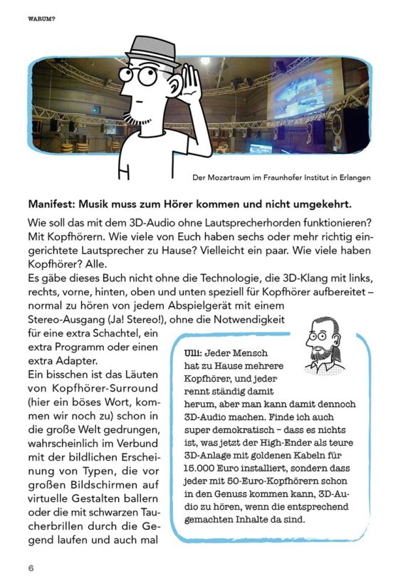 Hans-Martin Buff erklärt in seinem Buch “Überall – Musikproduktion in 3D Audio für Kopfhörer“, wie ohne technischen und finanziellen Mehraufwand von jedem Produzenten für jeden (Kopf-) Hörer 3D-Audio gemacht werden kann.